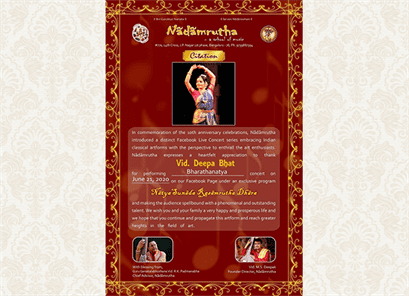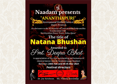 - Nrithya Kala Nipune-2019 from Kalayana Trust in 2019.