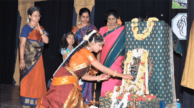 - The Senior Students perform solo for a whole Bharatanatyam Margam in front of a small audience.