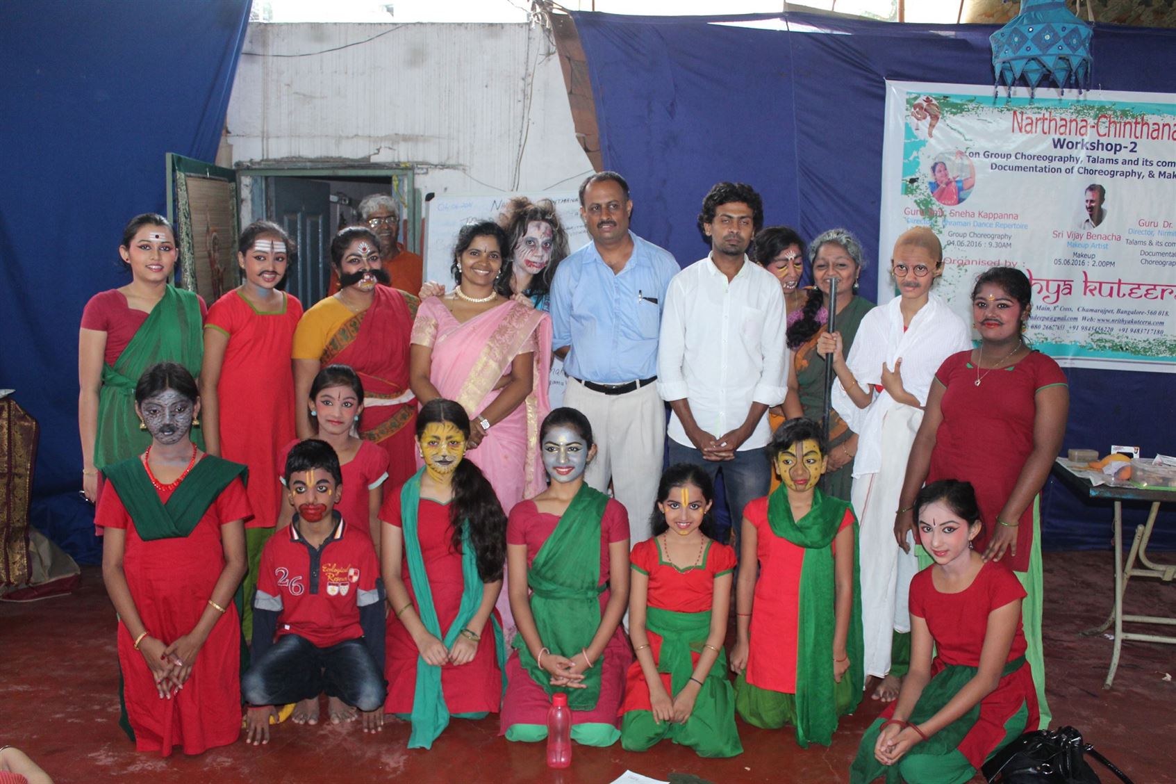 The greatest of the Gurus in the respective field have been asked to lead the sessions enhancing the learning experience of students. Tala, abhinaya, make-up, nattuvangam, jathi composition, group choreography & coordination, and numerous other topics have been covered thus far